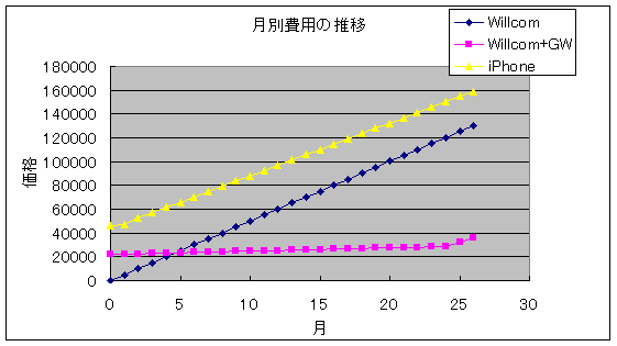 端末の魅力でiPhoneに押し切るか、コストでwillcomにするか、これが悩みどころ。多分iPhoneに押されるとは思うが。。。