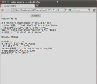 sinatraでKyTeaをブラウザから試すkytea-sinatra作ってみた
