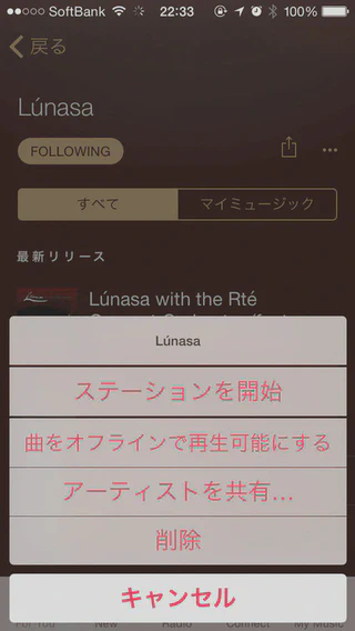 ちなみに、ちょっとアグレッシブだなと思うのが、アーティスト名で検索してアーティストリストに到達すると勝手にフォローする所。これは、ちょっと意図していなかったかも。