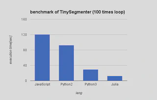 というわけで、今後はC++やgoと比較するためにTinySegmenterMakerのJulia template作って比較したいね、と話しています。TinySummarizerにもtryしたいなぁ。