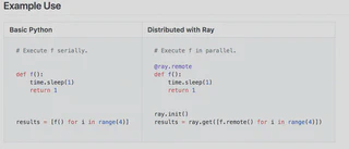 RAYはこのRISELabのセットの中での基礎となるフレームワークです。READMEにもある通り、以下のようなdecoratorを書くだけでPythonの処理を並列・分散処理できるというコンセプトのものになります。